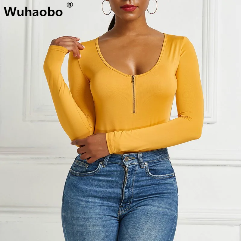 Name: Wuhaobo-Body de talla grande 3XL para mujer, Body Sexy para fiesta y discoteca, mono con cuello de pico y cremallera, mono de manga larga negro para mujer