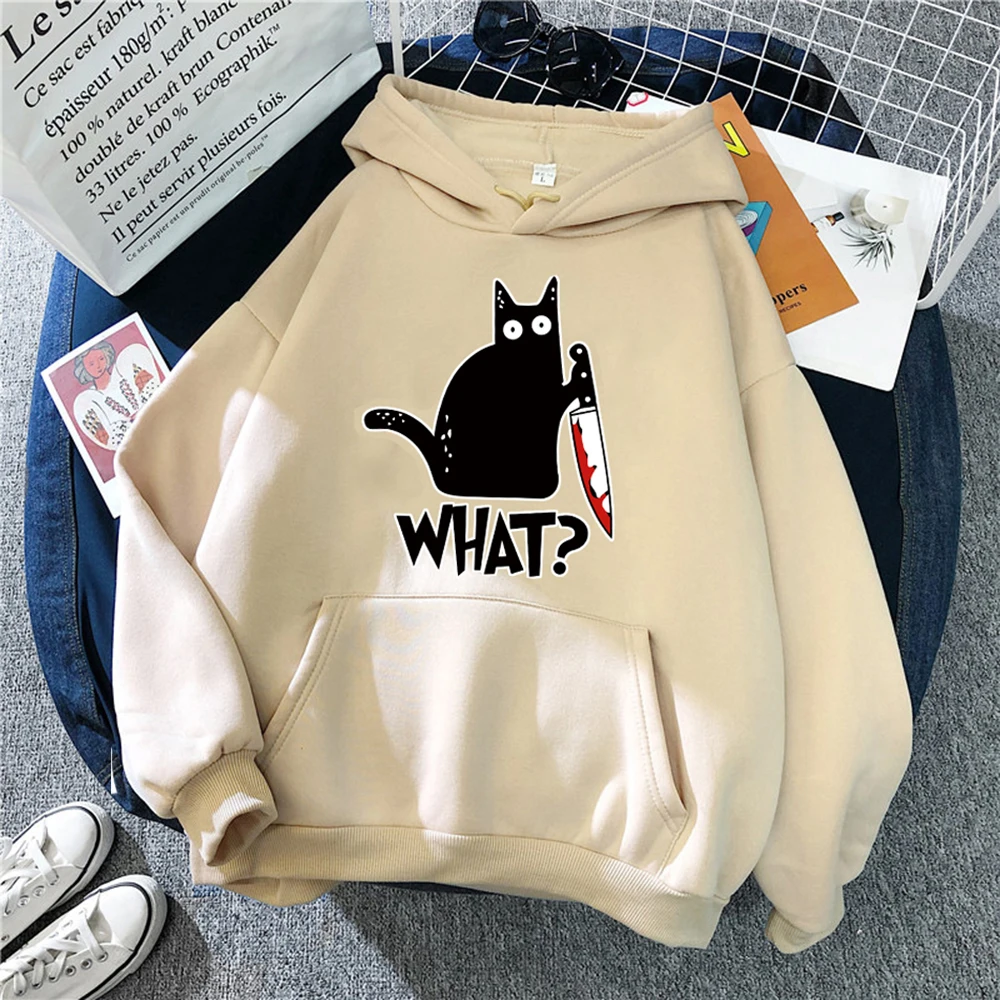 Name: Sudadera con capucha para mujer, suéter pequeño negro con capucha de gato y cuchillo, de talla grande, sudadera estética para mujer, moda de invierno